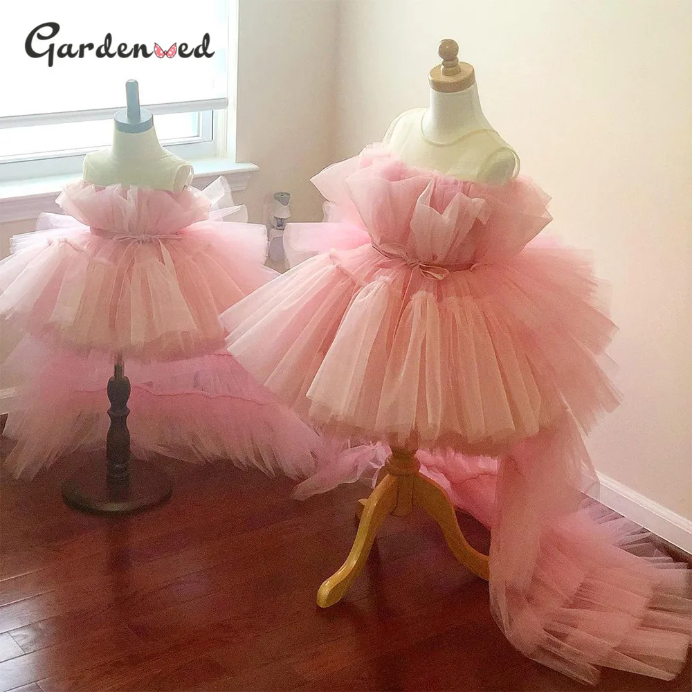 Тюлевое платье принцессы с розами, Пышные Платья с цветочным рисунком для девочек, детское платье на день рождения, для первого причастия, свадьбы, вечеринки