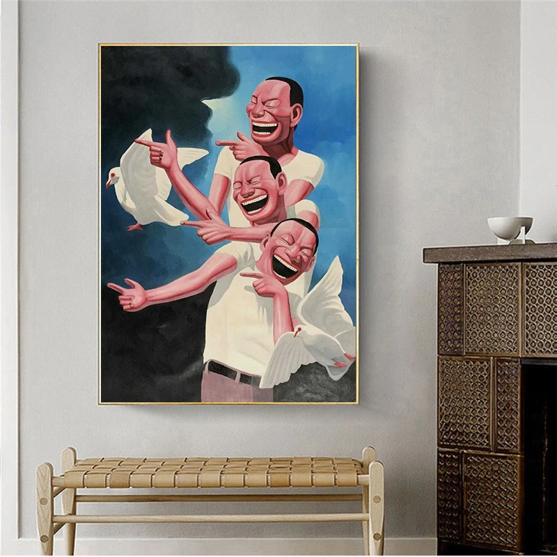 Рисунок Картины изображение Yue Minjun смеющийся человек холст картины художественные плакаты и принты настенные картины для Декор в гостиную