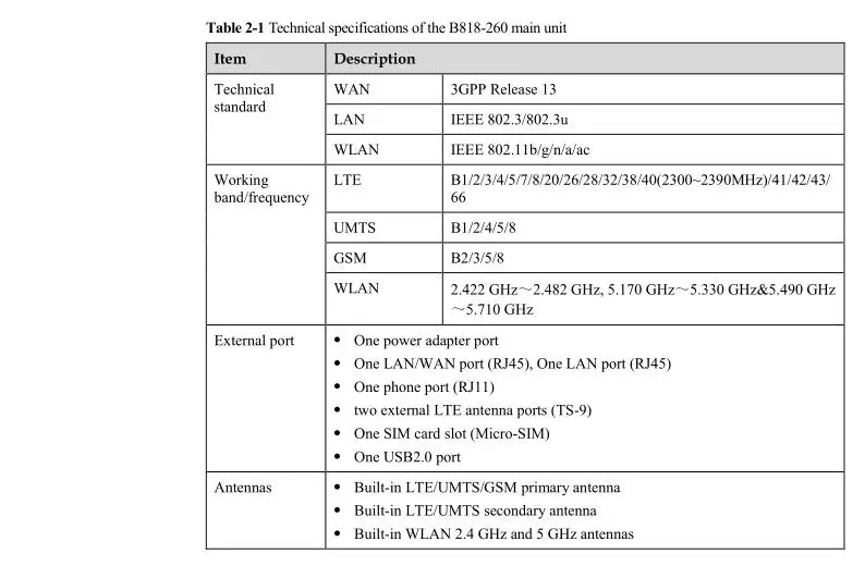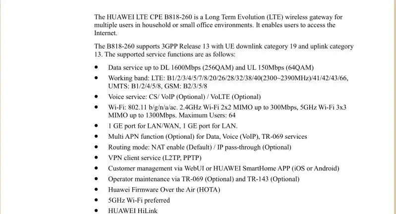 Huawei B818-260 LTE B1234578202628323840(2300 2390 МГц)41424366 Cat19 1,6 Гбитс беспроводной маршрутизатор CPE