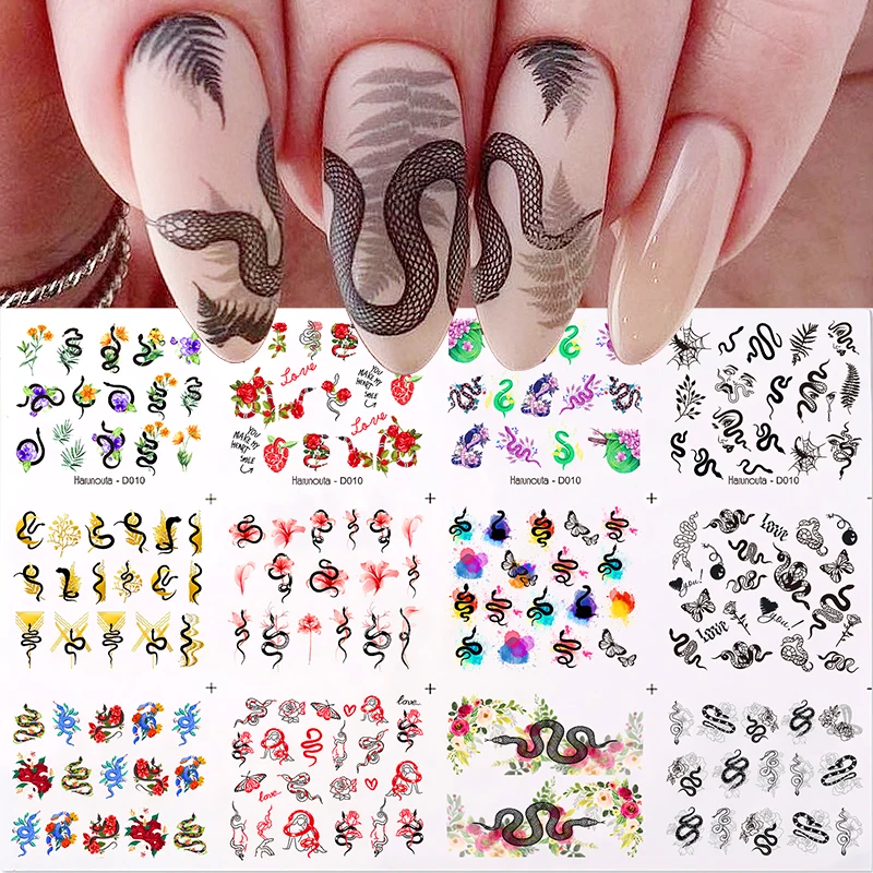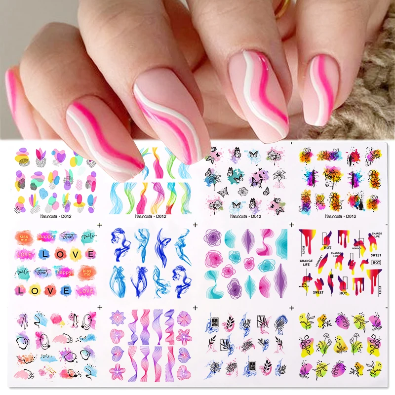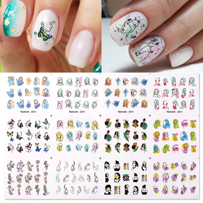 Набор наклеек для ногтей, 12 дизайнов, Весенняя тема, геометрический цветок, листья, изображение лица, Бабочка, фруктовые переводки, слайдеры, украшение для маникюра