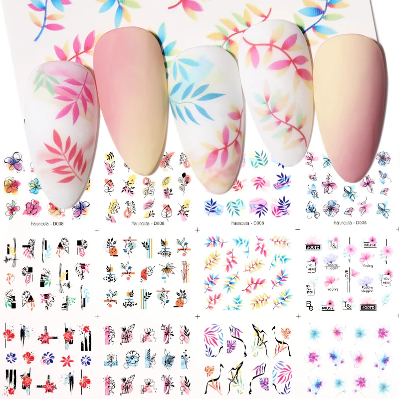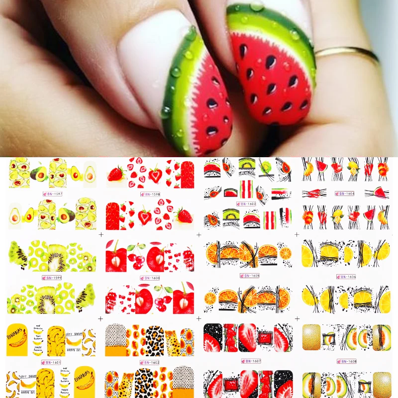 Набор наклеек для ногтей, 12 шт., абстрактные наклейки с рисунком лица, весенние фрукты, листья, геометрические переводные наклейки, слайдеры, украшение для маникюра