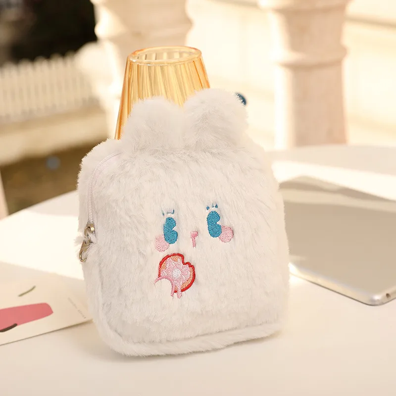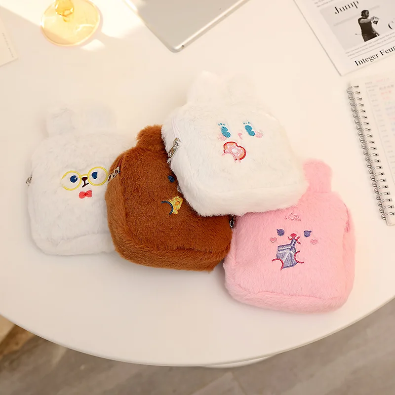 Мультяшная плюшевая сумка-Органайзер для гигиенических прокладок, меховая сумка для салфеток с вышивкой, сумка для хранения кистей, органайзер для тампонов для девочек