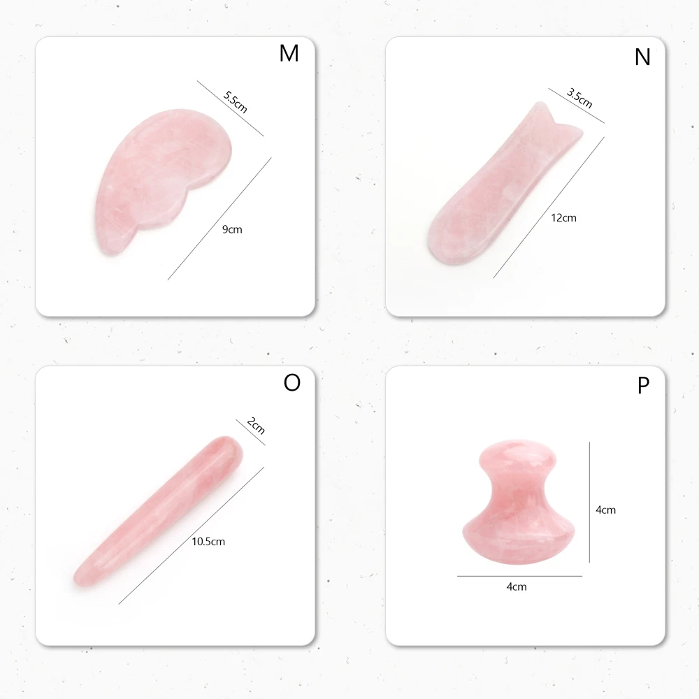 Скребок гуаша из розового кварца, Нефритовый камень, для массажа, ручной работы, для ухода за кожей, против морщин, 5 шт.