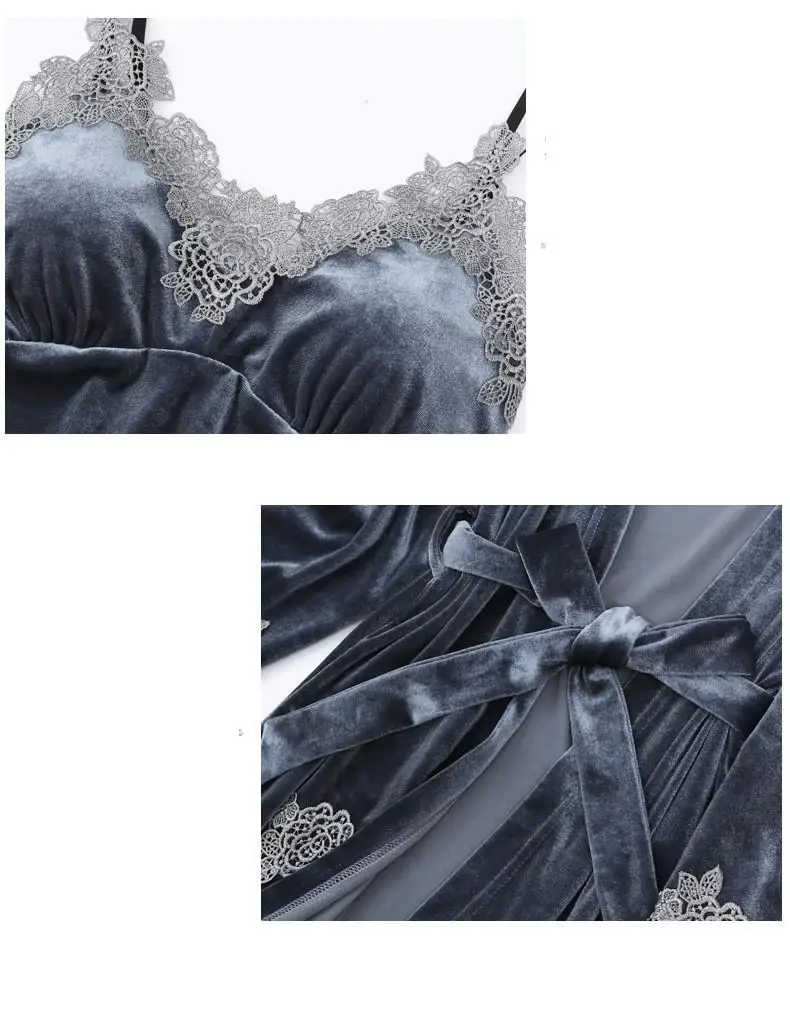 Осенний бархатный женский пижамный комплект из 4 предметов, одежда для сна, бордовый велюровый Халат, ночная рубашка, кружевной лоскутный Пижамный костюм, пикантный пеньюар
