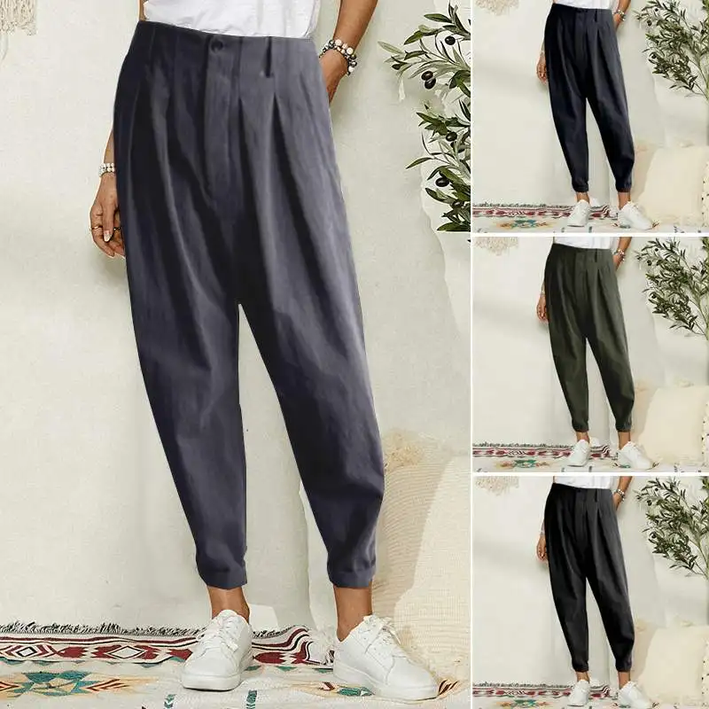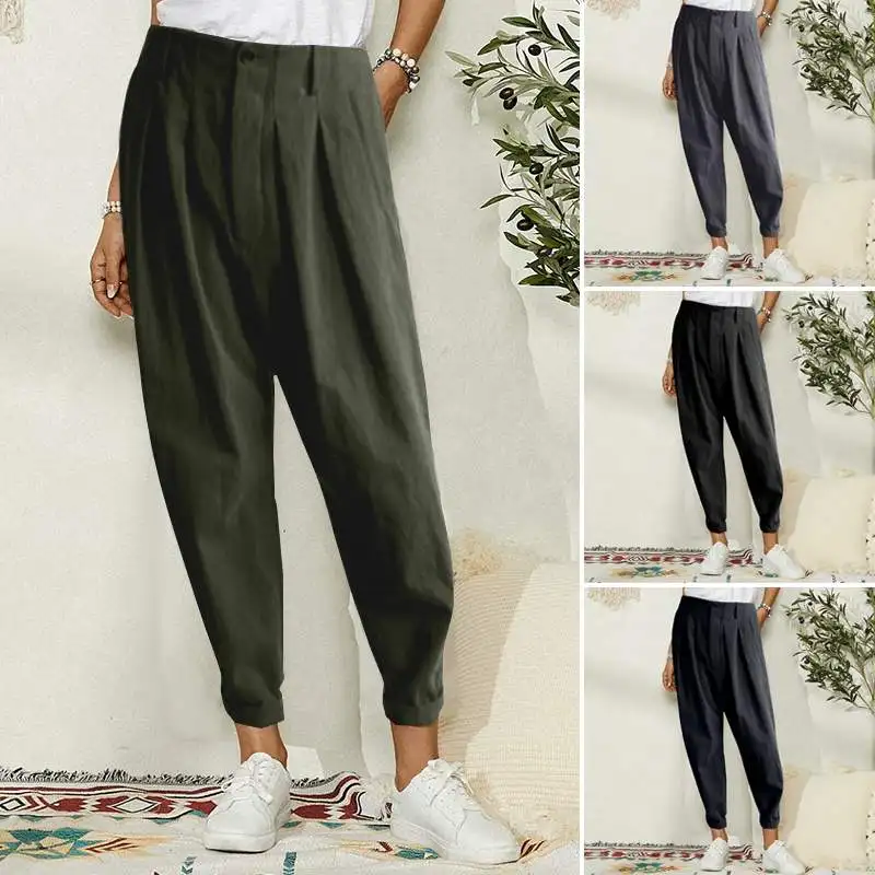 Эластичные льняные Женские винтажные хлопковые свободные брюки ZANZ...