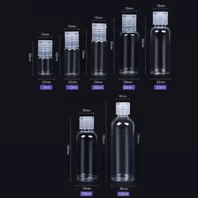 Пластиковые прозрачные флаконы с откидной крышкой для лосьона, 50 шт., 51020305060100 мл, флаконы для косметического шампуня, контейнер для образцов, многоразовые флаконы для жидкости