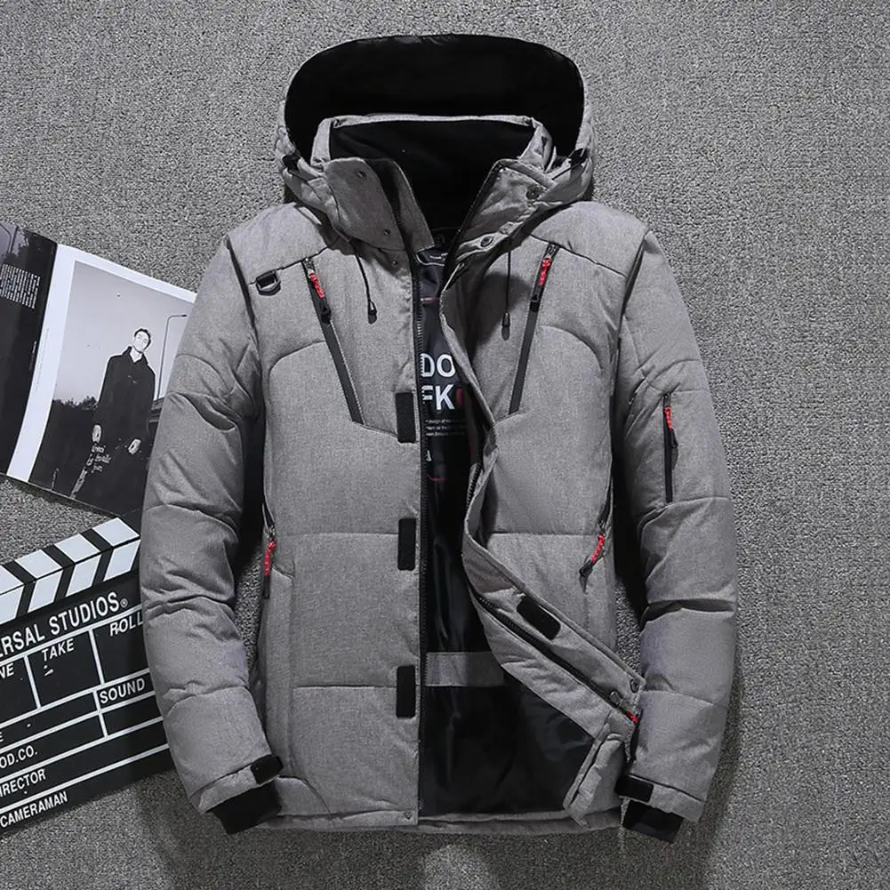 Мужской зимний теплый пуховик с капюшоном, пальто, верхняя одежда, приталенный короткий пуховик на молнии, верхняя одежда с капюшоном, утолщенный пуховик с подкладкой