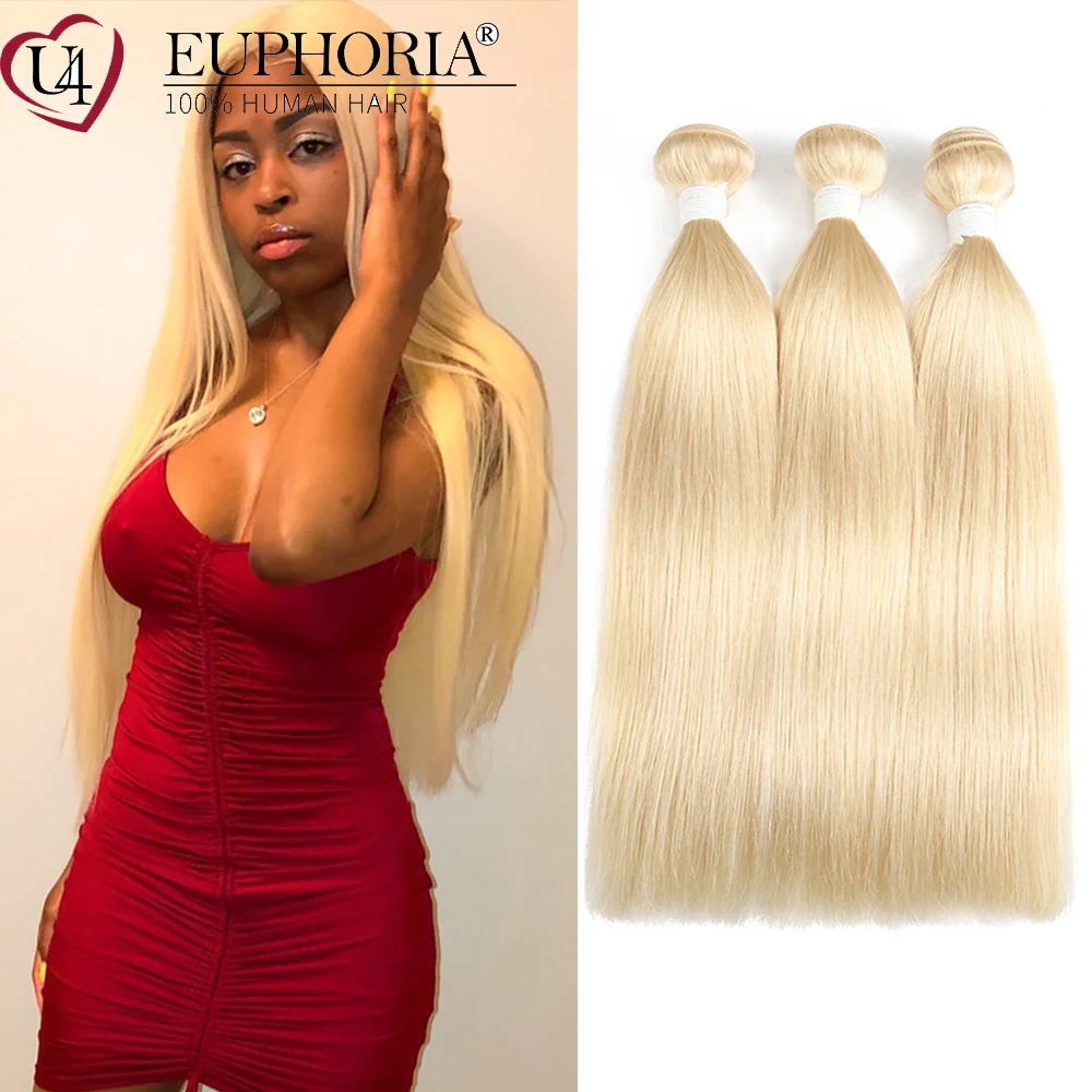 Блонд 613 прямые волосы 12 пряди средней длины коричневый бразильский Реми 100% человеческие волосы пряди для наращивания для женщин EUPHORIA