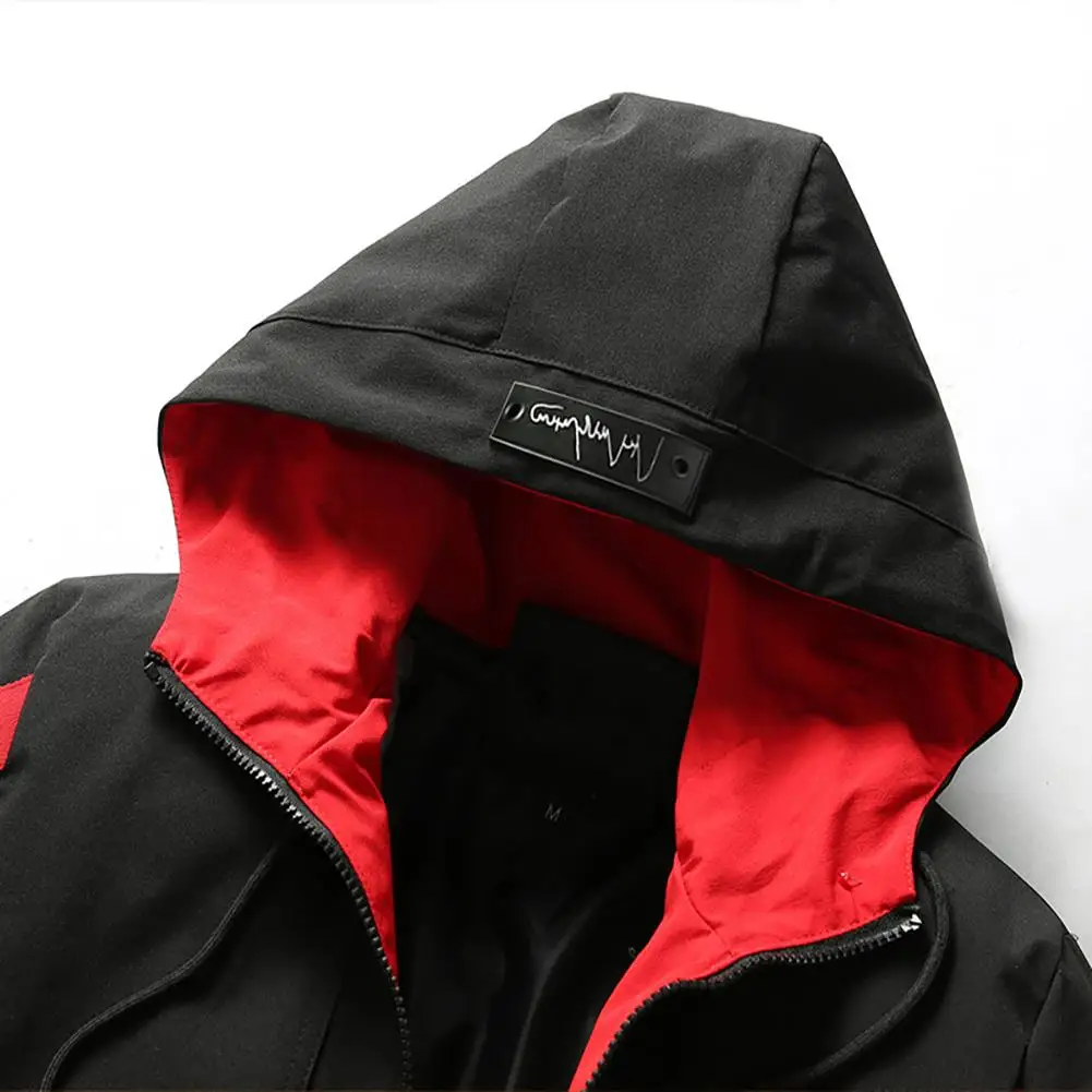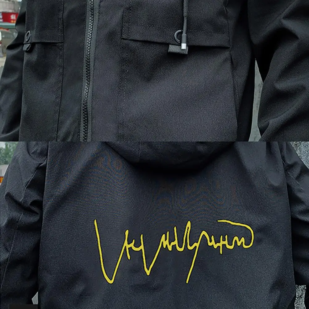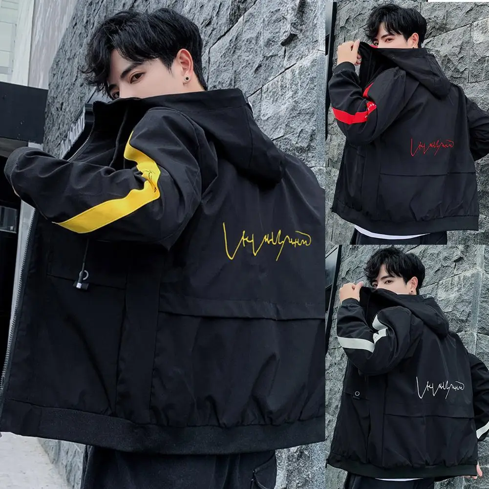 Модная мужская зимняя теплая куртка, тренчкот с капюшоном, верхняя одежда с длинным рукавом, на молнии, с карманами и буквенным принтом, куртка с капюшоном, верхняя одежда