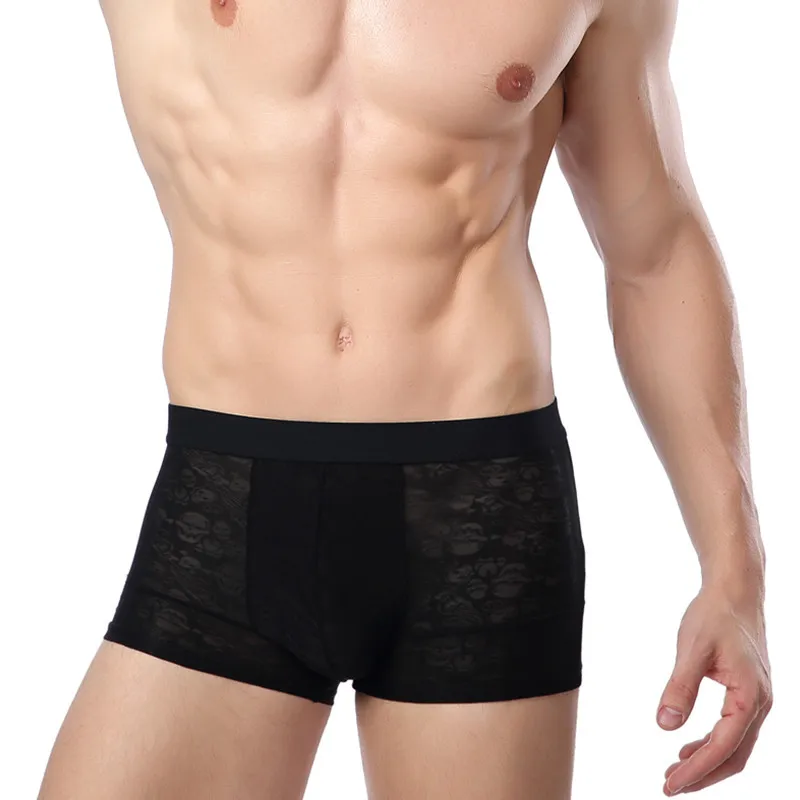 Трусы-боксеры мужские, прозрачные, ультратонкие, дышащие, с низкой посадкой, Однотонные трусы