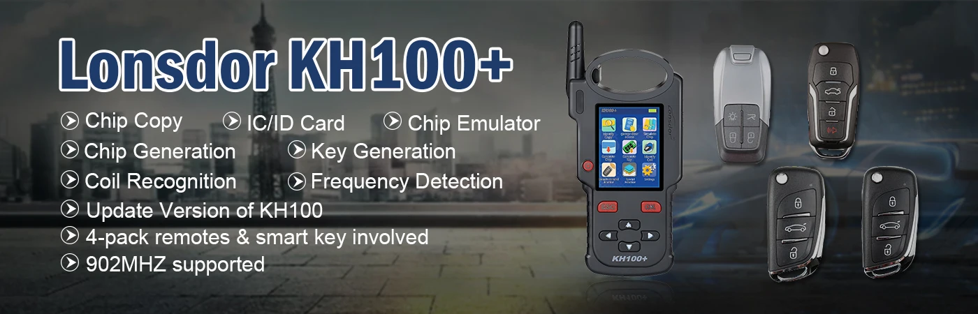 KH100 + портативное устройство является последней обновленной версией от старого KH100, он охватывает все функции, которые были у KH100, кроме того, он намного превосходит следующим образом:● 4 набора пультов и смарт-ключей● Удобный интегрированный держатель чипа● Поддержка 902 МГц● Увеличение расстояния сбора данных● Более точное определение частоты● Более удобный для пользователя● Быстрый запуск● Большая память● Оптимизированная система питания (более быстрая зарядка и защита тепла)● Модернизированная упаковкаЛучший выбор для слесаря!