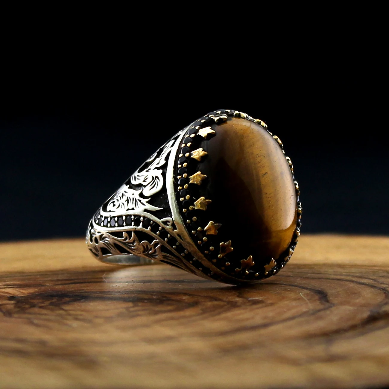 Турецкий Стиль Чистый Настоящий Стерлингового Серебра 925 Натуральный Камень Кольцо Для Мужчин Женщин Высококачественные Ювелирные Изделия Панк Ретро Мода Старинные Подарок Ручной Работы Циркон Оникс Агат Аксессуар