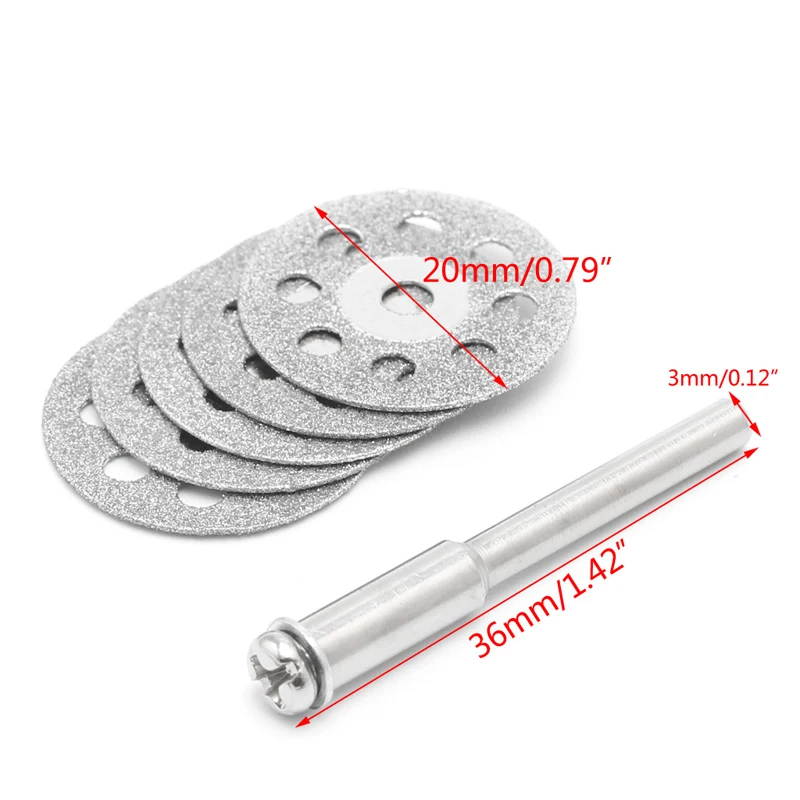 Посылка включает в себя:5X 20 мм/22 мм/25 мм/30 мм алмазные режущие диски1 оправка