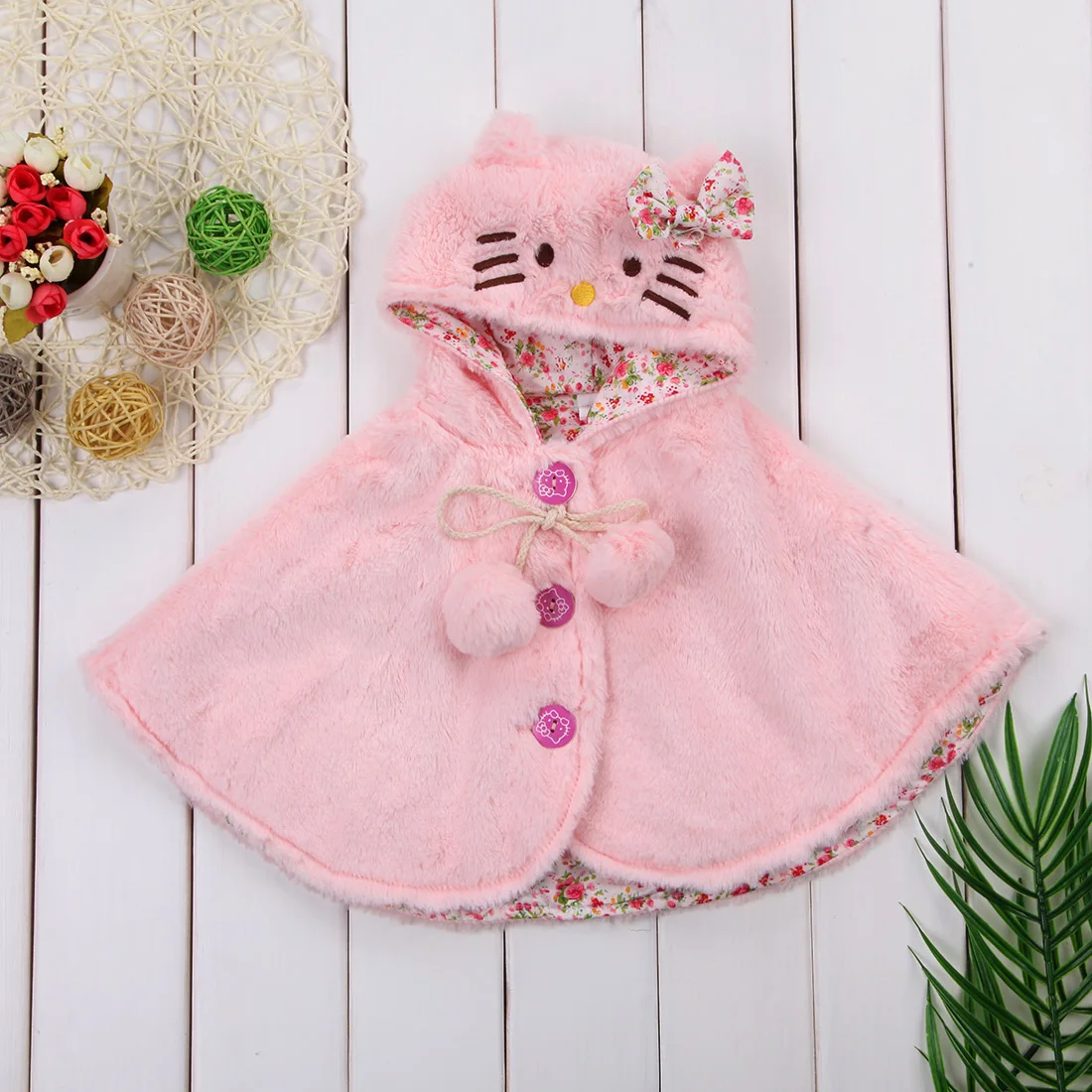 Детская зимняя теплая накидка, пальто для новорожденных девочек, одежда с капюшоном, плащ-пончо, верхняя одежда, теплая зимняя куртка для маленьких девочек, меховая одежда