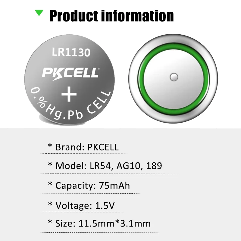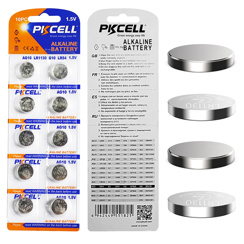 Кнопочные батарейки PKCELL 50 шт.5 карт, батарейки 1,5 в AG10 LR1130 Щелочная батарейка-кнопка, батарея 389 SR54 для часов, камер, калькуляторов, игрушек