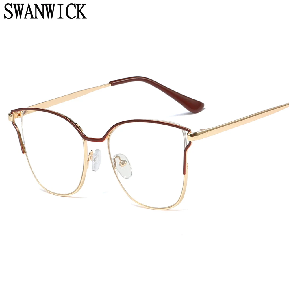 Очки Swanwick с защитой от сисветильник, кошачий глаз, в металлической квадратной оправе, оптические женские прозрачные линзы красного, черного цветов