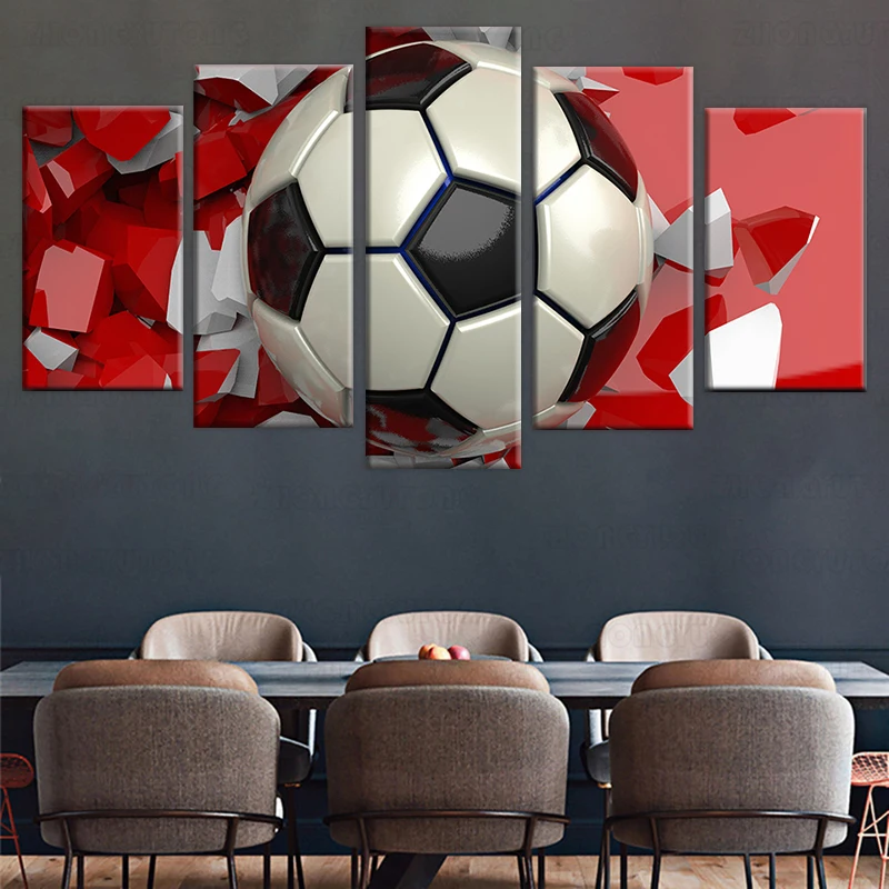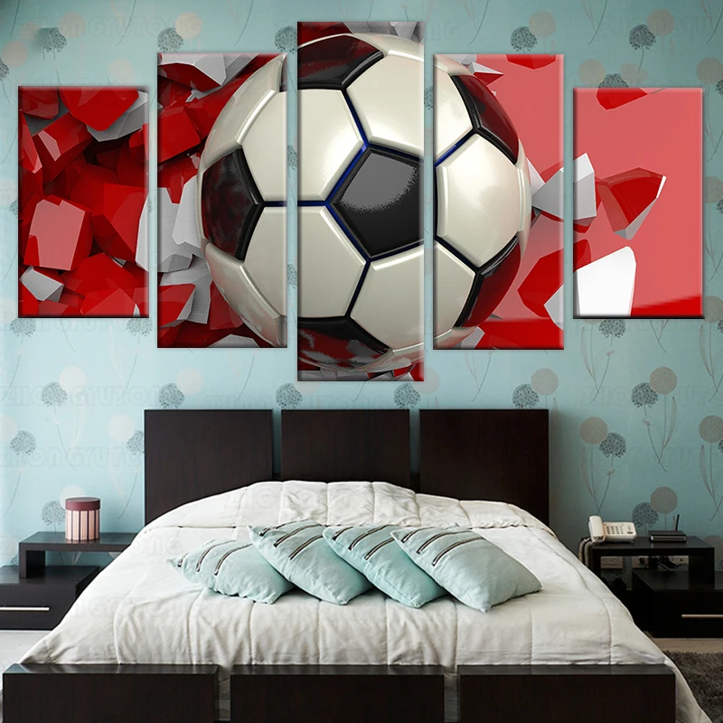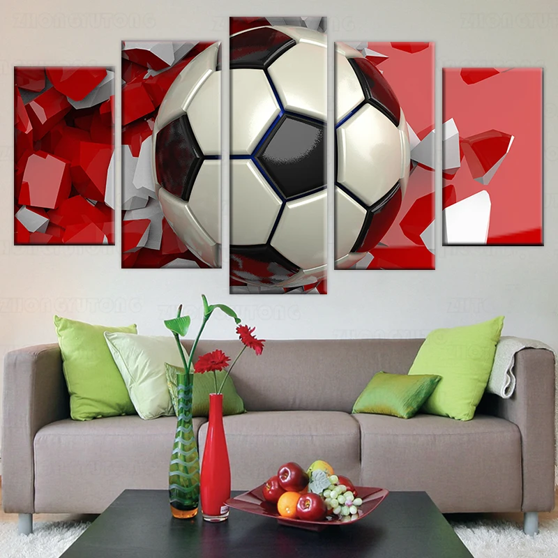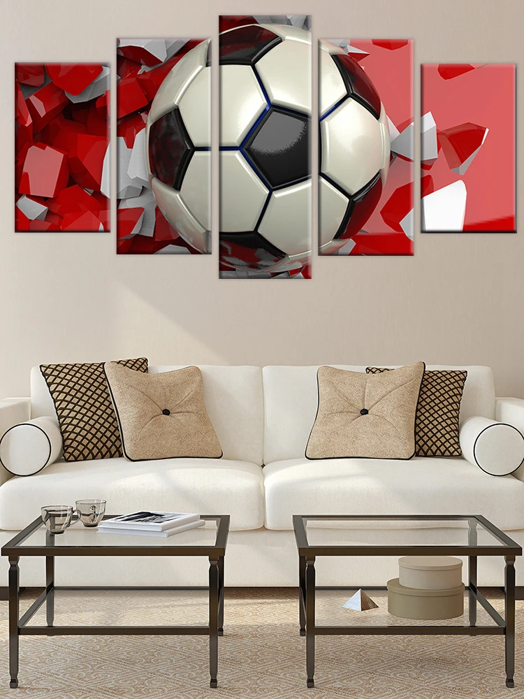 HD печать 5 шт. Холст Искусство 3D футбол фотообои картины для гостиной современный Спорт Плакат рамка