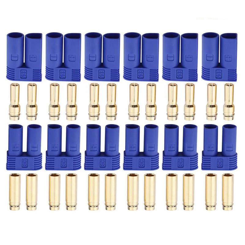 Клеммы для проводов EC5, 6 пар электрических разъемов, штекер-гнездо, штекер-гнездо, для батареидвигателя RC ESC LIPO, 12 шт.