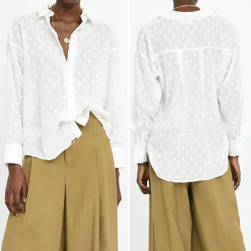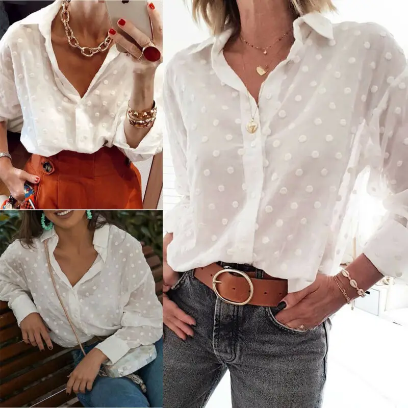 Женская блузка в горошек, с V-образным вырезом и длинным рукавом