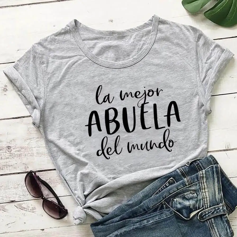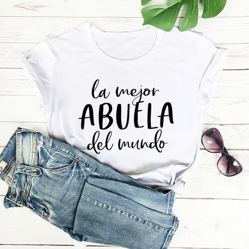 Ла лучший Abuela Del Mundo 100% испанского хлопка с принтом женская футболка бабушка подарок футболка бабушки летний Повседневный Топ с короткими рукавами