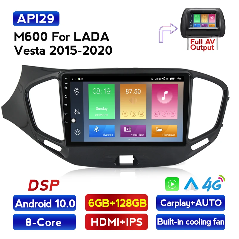 Автомагнитола для Lada Vesta, стерео-система на Android 128, 6 + 10,0 ГБ, с GPS, видеоплеером, выходом AV, BT, для Lada Vesta Cross Sport, 2015-2020