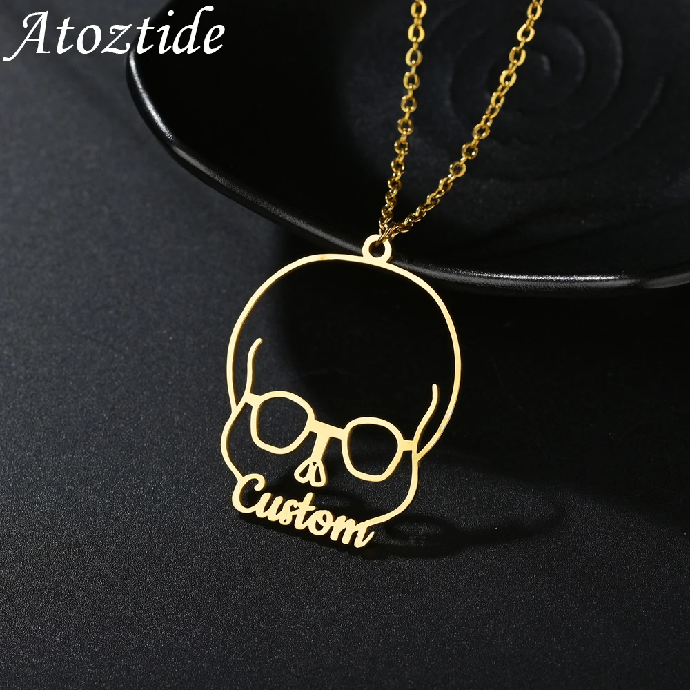 Atoztide индивидуальная мода нержавеющая сталь имя Череп персонализированные буквы золотой цвет подвеска на цепочке-ожерелье для мужчин подарок