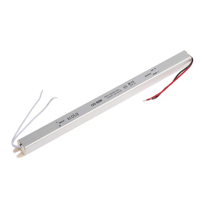 Блок питания для светодиодной ленты Ecola LED strip Power Supply, 60Вт, 12В, длинный, тонкий 4359821