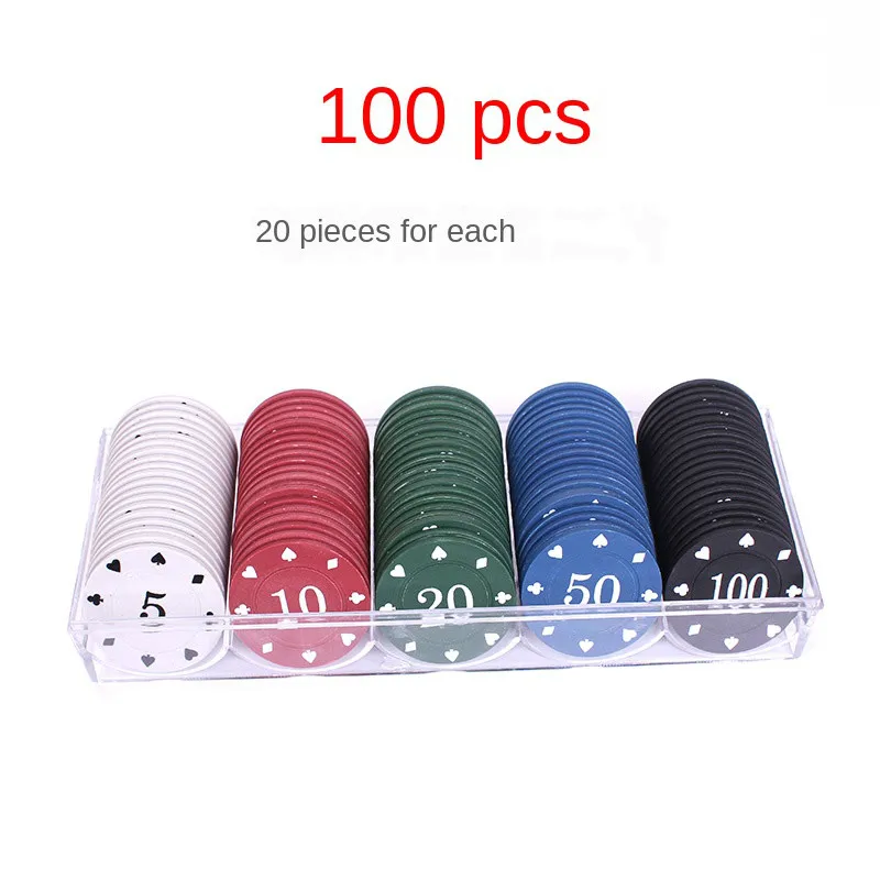100 шт. Техасские покерные фишки, профессиональные карты Лас-Вегас, счетная игра, бинго, жетон, казино, покерные фишки, набор цифровых фишек, блэкджек