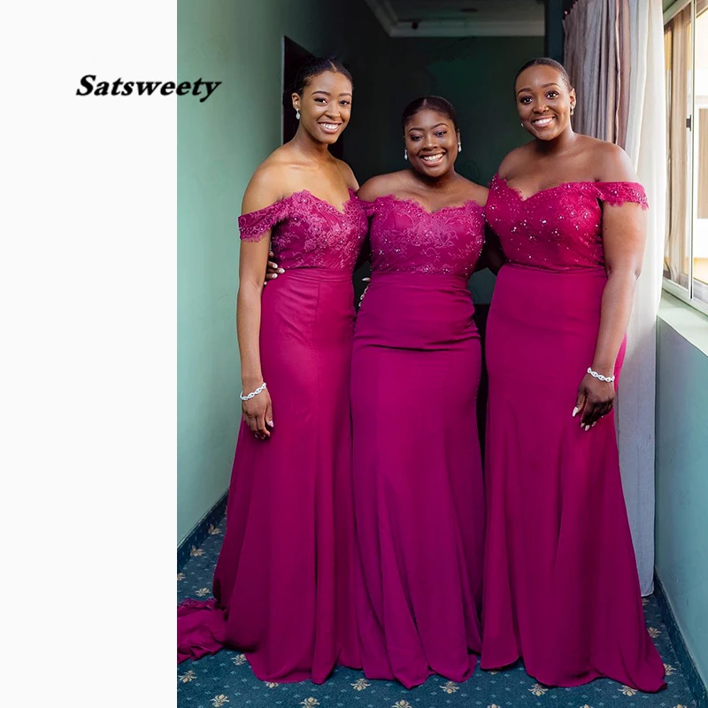 Фуксия платье-футляр для подружки невесты длинное нигерийское свадебное банкетное элегантное платье с открытыми плечами для милой подружки невесты со шлейфом