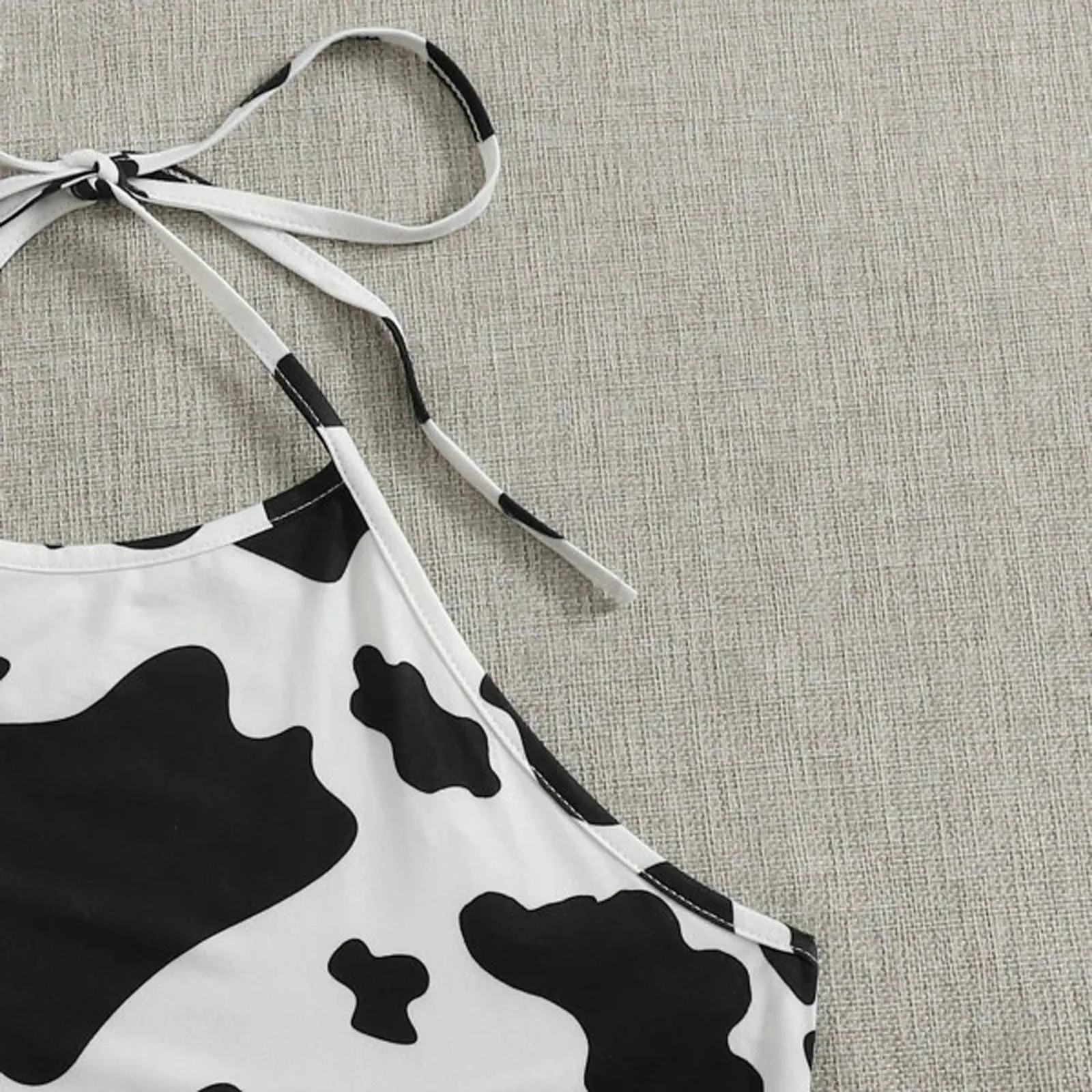 Сексуальный женский укороченный топ на бретелях с коровьим принтом,...