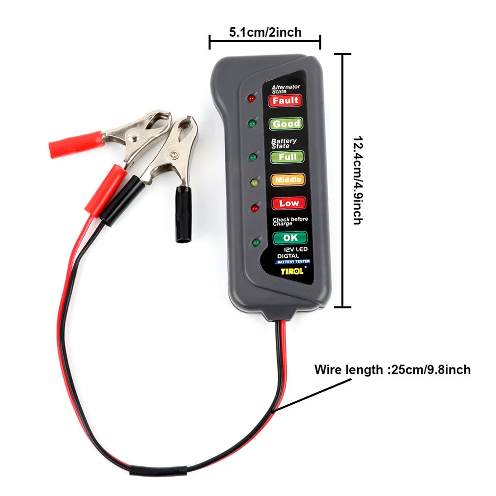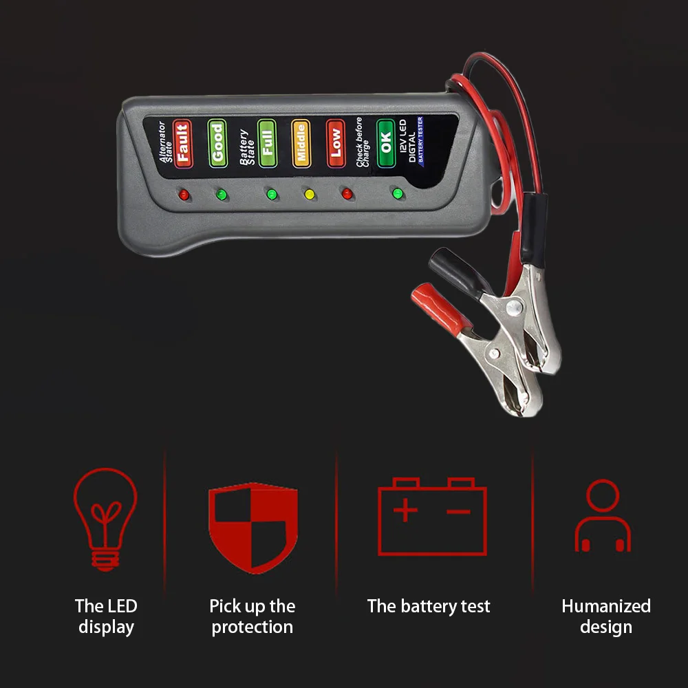 Тестер автомобильного аккумулятора, 12 В, 6 светодиодов