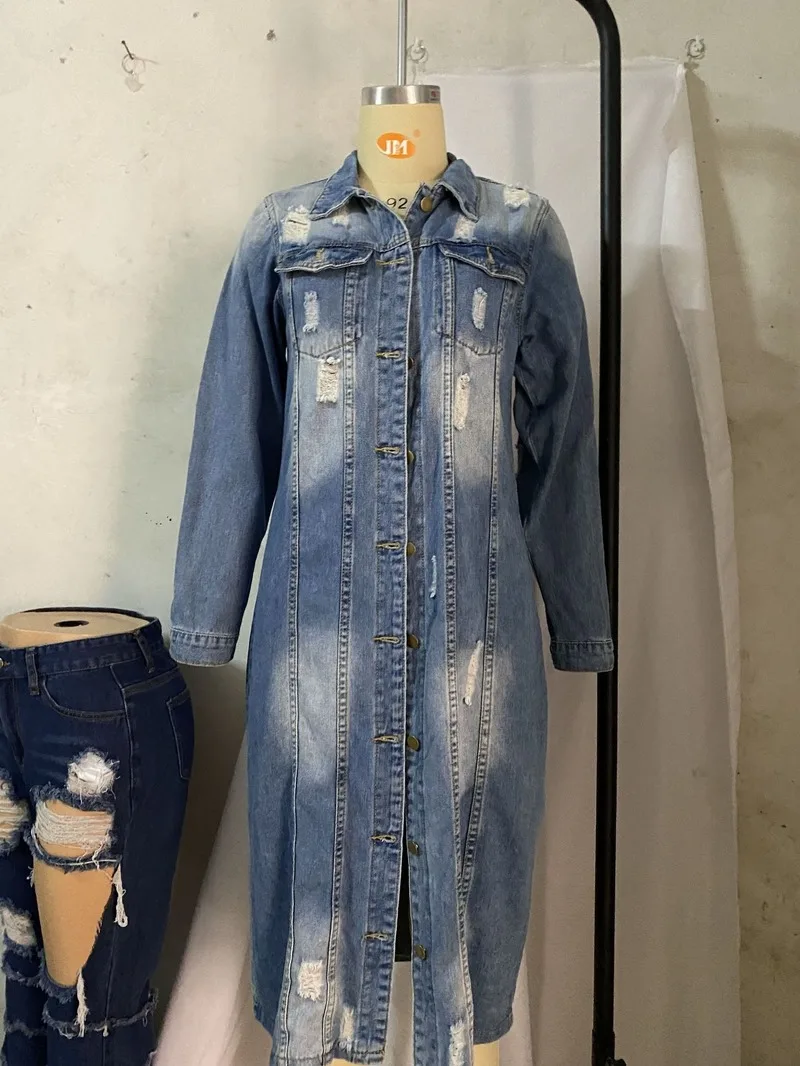 Длинные джинсовые куртки женские осенние сексуальные рваные джинсы винтажные короткие джинсовые куртки с пышными рукавами женское шикарное пальто уличная одежда