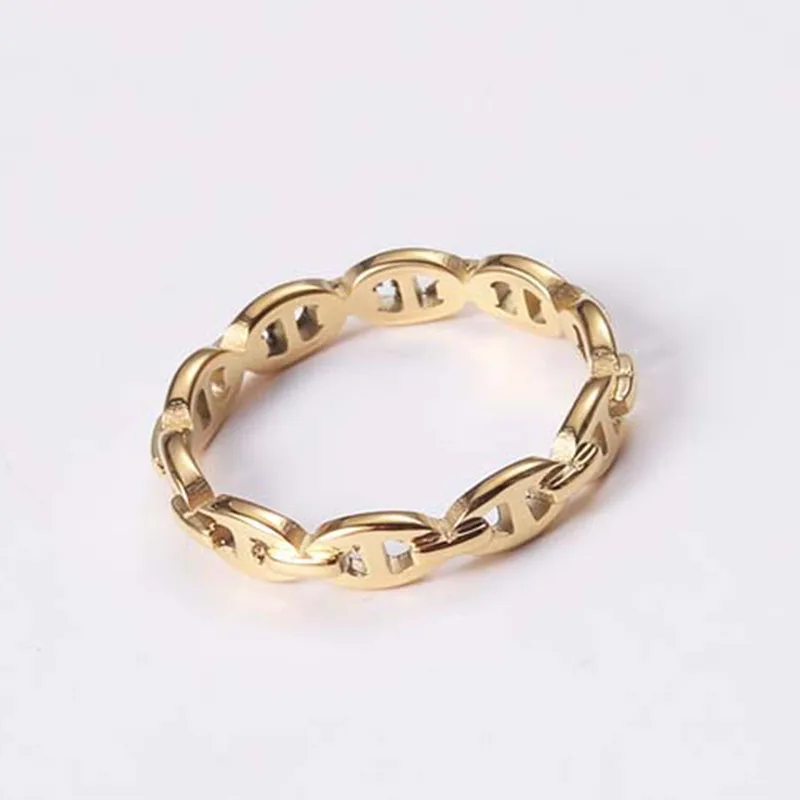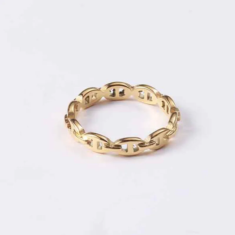 Материал: нержавеющая стальЦвет: позолотаРазмер: #6/#7/#8Женское кольцо из нержавеющей стали в виде кофейных зерен, позолоченная цепочка со свиньей мордой, минималистичное кольцо, изящное модное ювелирное изделие 2021