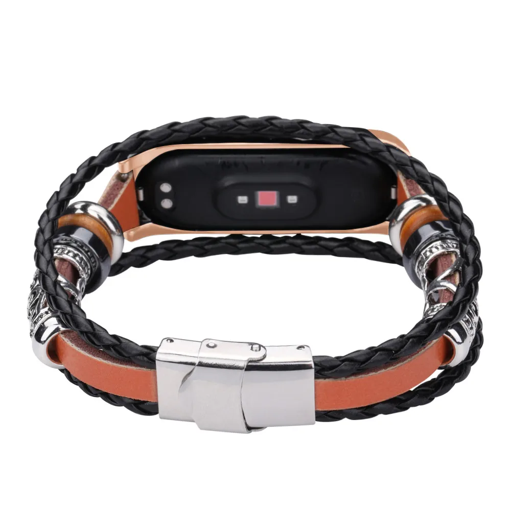 Модный кожаный браслет с бисером Плетеный ремешок для часов Xiaomi Mi Band 5