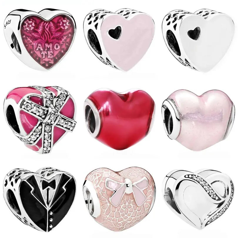 Розовый милый бант и кружевное искусственное украшение для латиноамериканской любви наш особый день подходят для браслета Пандоры с изображением сердца, для подарков DIY ювелирные изделия