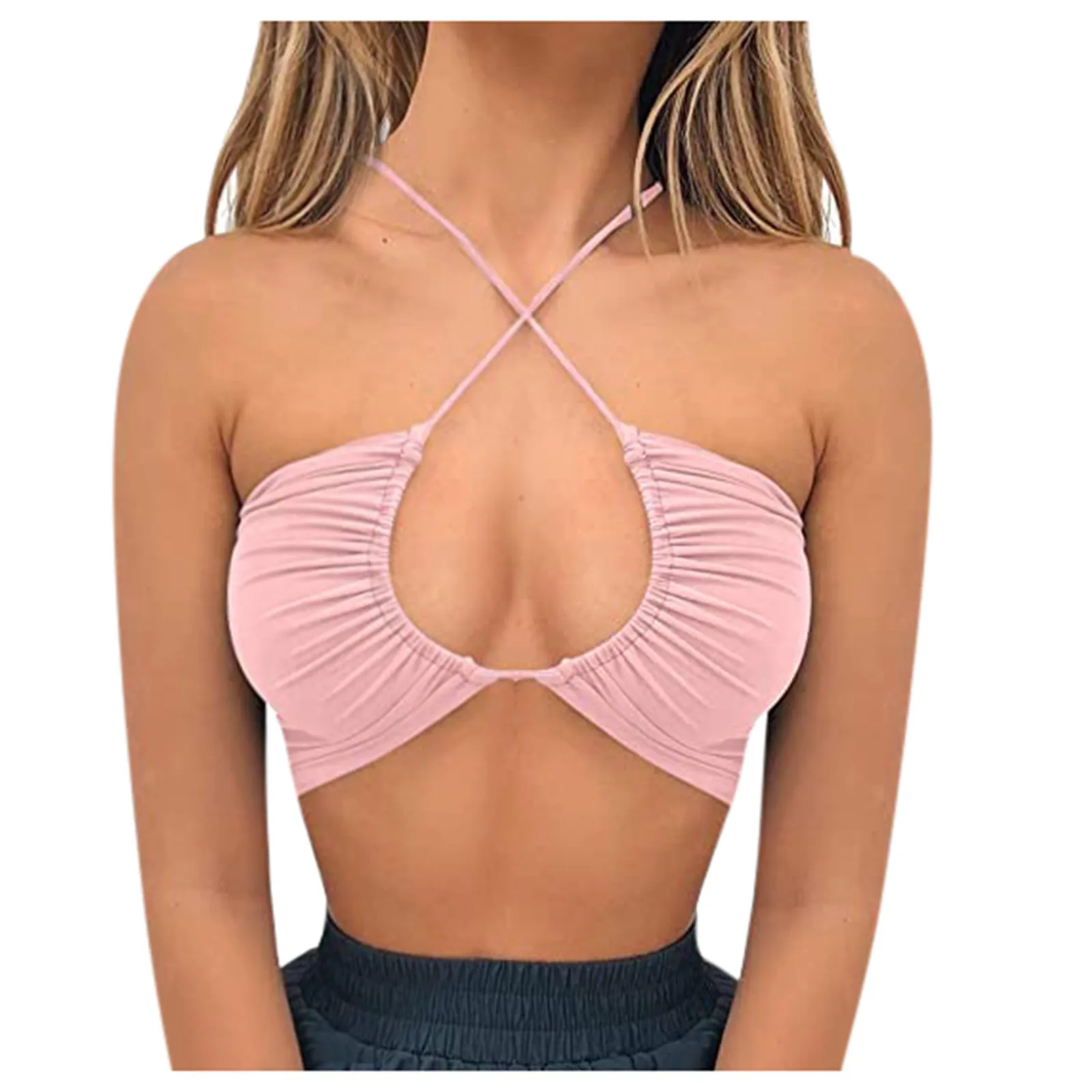 Топ без рукавов Женский, пикантный укороченный топ с перекрестными ремешками на шнуровке, базовый укороченный топ с бантом, Прямая поставка, аксессуар для женщин, жилет с принтом 2021