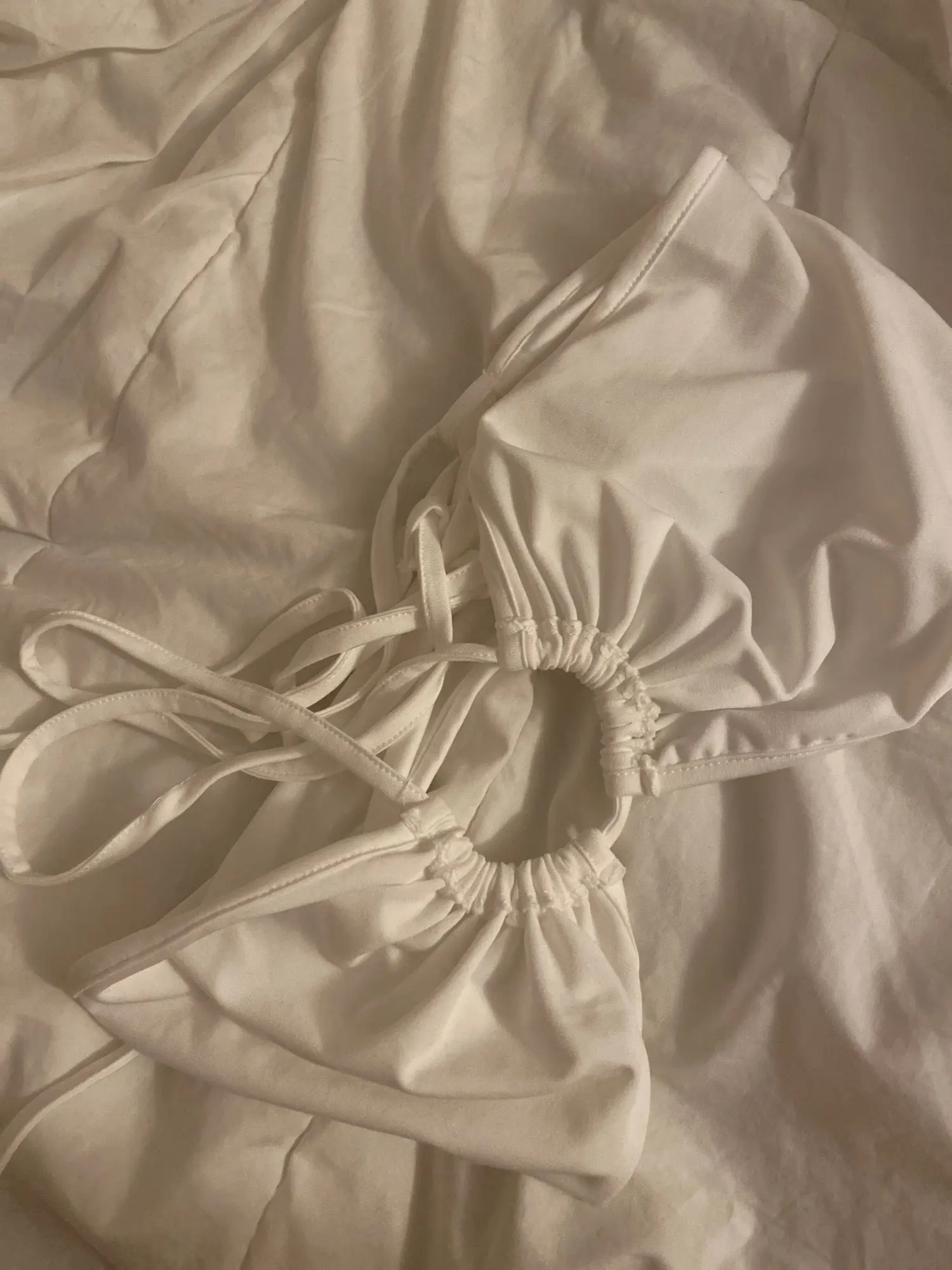 Я получил этот топ, но его очень трудно носить, потому что я hv, чтобы положить все сам, все струны были вне