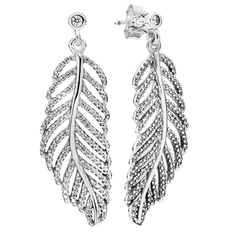 Сверкающие массивные искусственные перья, листья, привлекательность, Стерлинговое Серебро 925 пробы, женский свадебный подарок, ювелирные изделия Pandora DIY