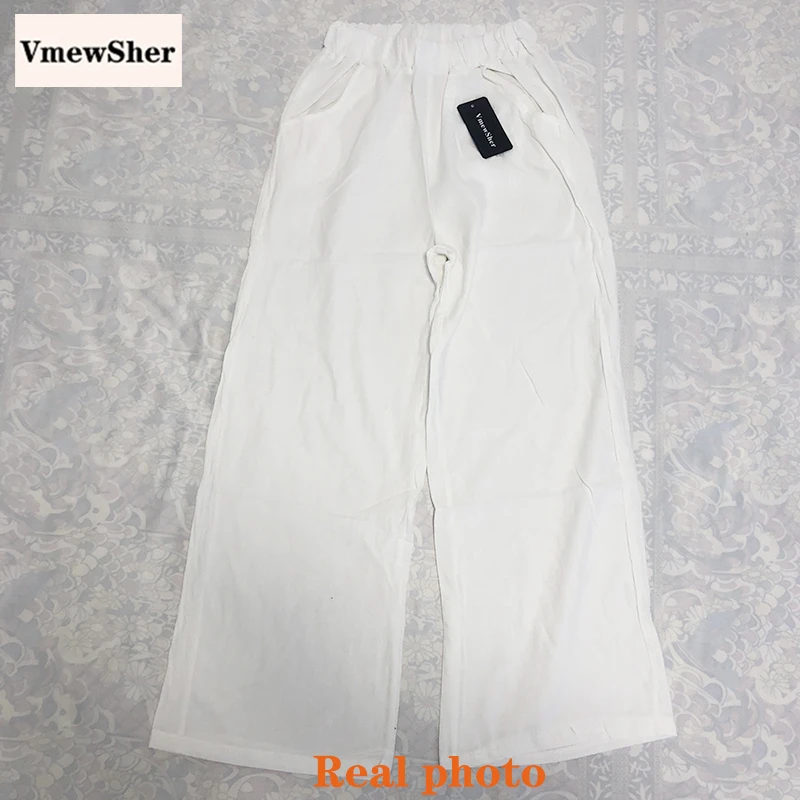 Женские широкие брюки VmewSher, однотонные бежевые, белые однотонные брюки с высокой талией в стиле бохо, весна-лето, свободные женские брюки