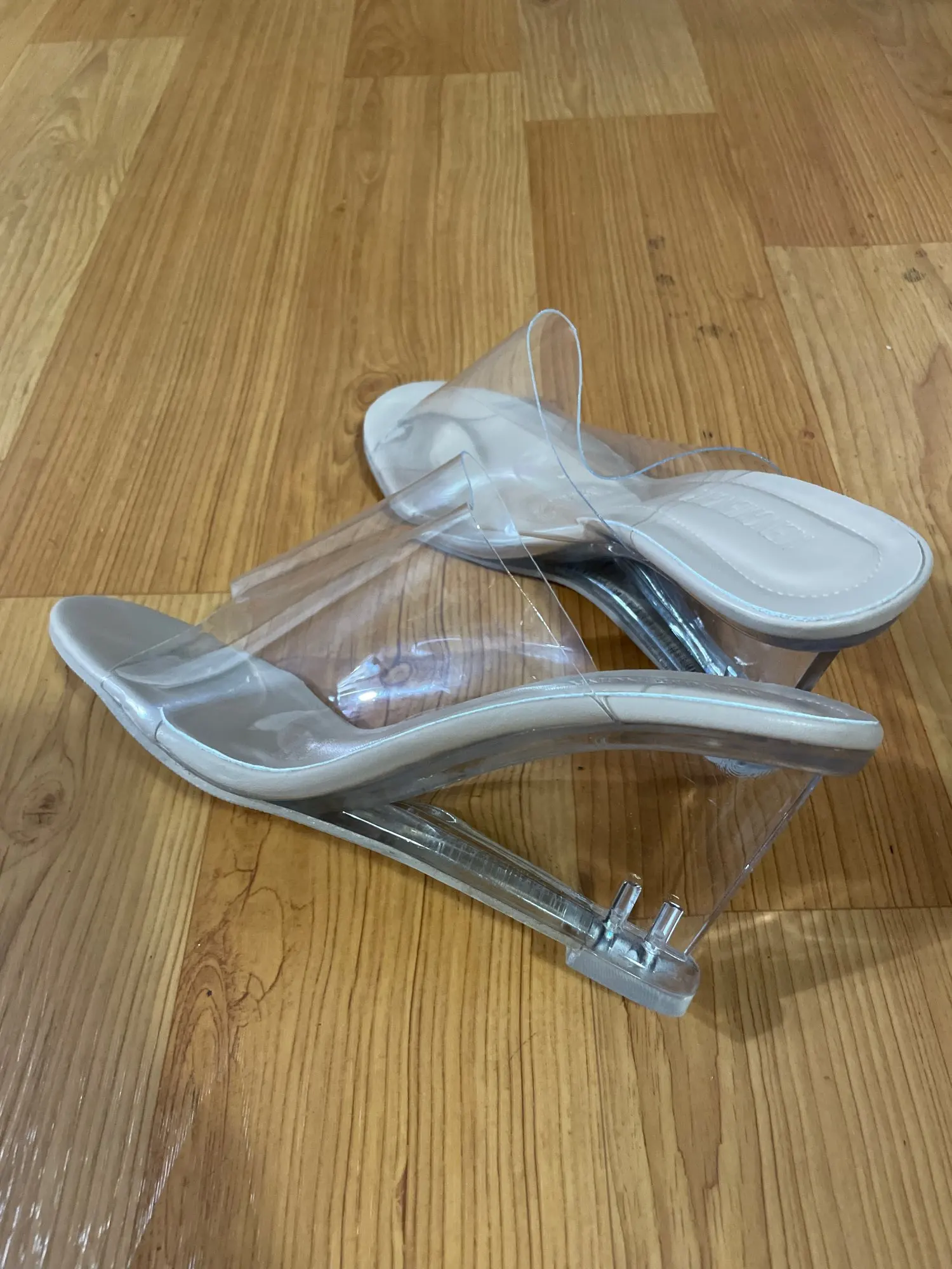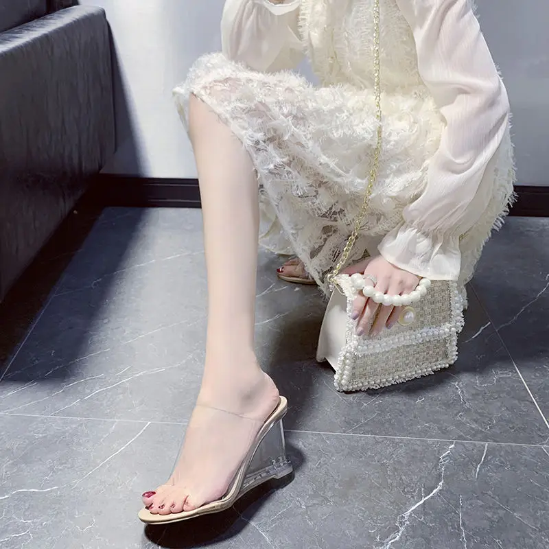 Шлепанцы ZUZI женские на танкетке, пикантные прозрачные сандалии с кристаллами, высокий каблук, туфли с открытым носком, сланцы, бежевые, лето