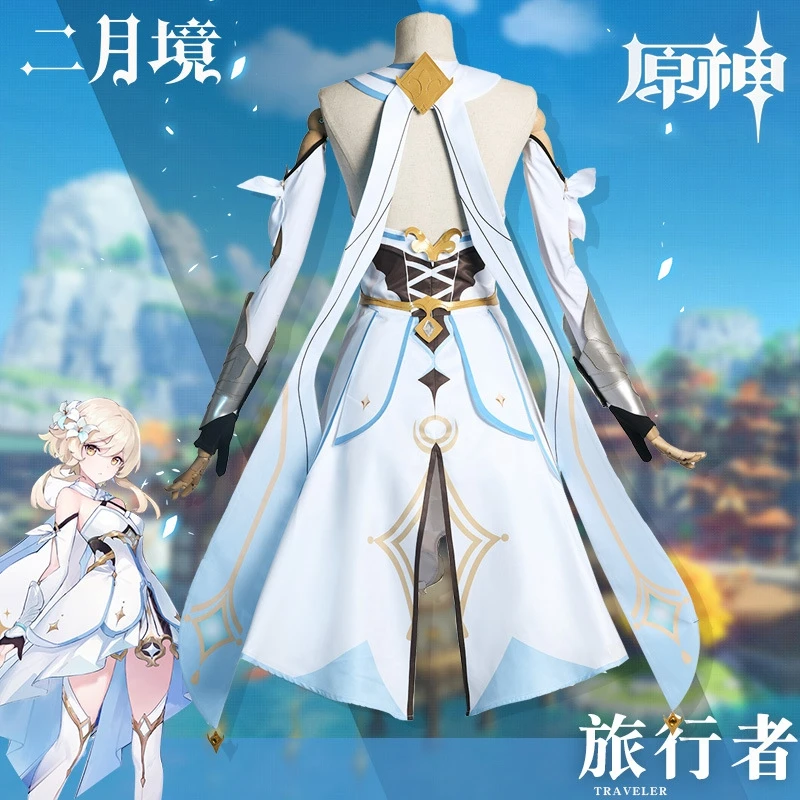 Костюм для косплея Genshin Impact, костюм для косплея путешественника люмина, женский белый костюм, платье для Хэллоуина, женский костюм
