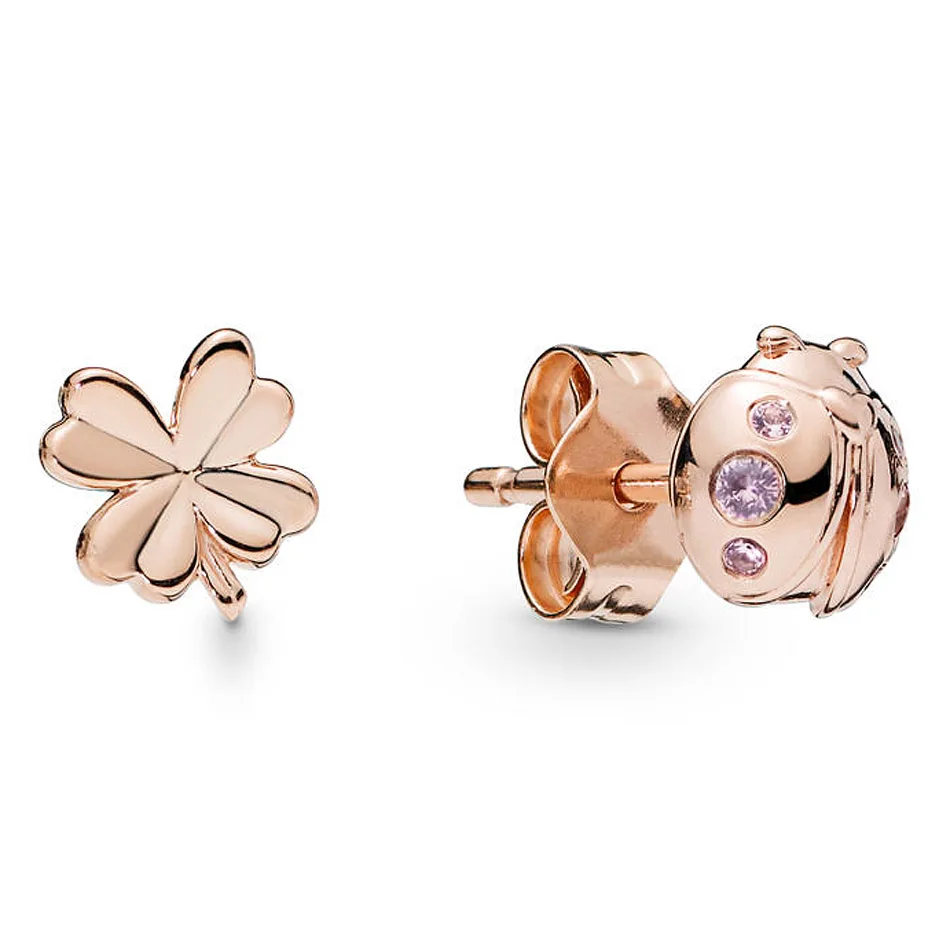 Серьги женские из серебра 925 пробы с сердцами и божьей коровкой