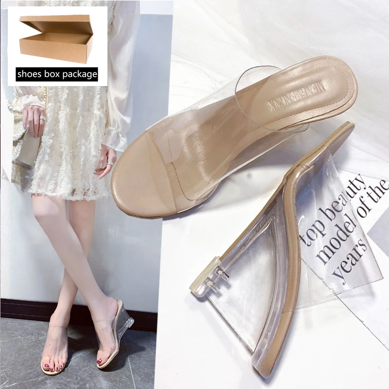 Желе, полностью прозрачное; Босоножки и шлепанцы на высоком каблуке; Женская обувь с открытым носком; С квадратным носком на танкетке со стразами; Фея Стиль 2021 Новое летнее