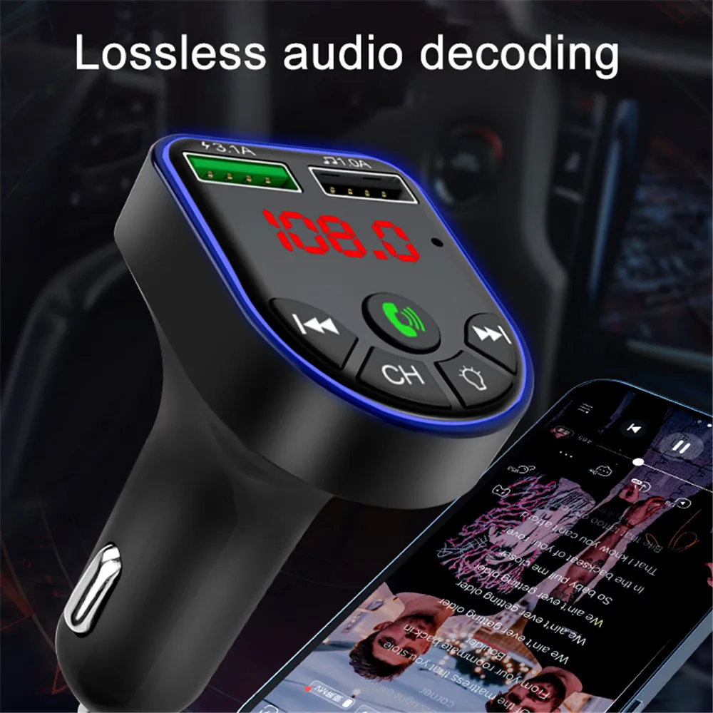 FM-трансмиттер в автомобиль, Bluetooth 5,0, MP3 модулятор, беспроводной аудиоприемник, быстрая зарядка с двумя USB-портами, а
