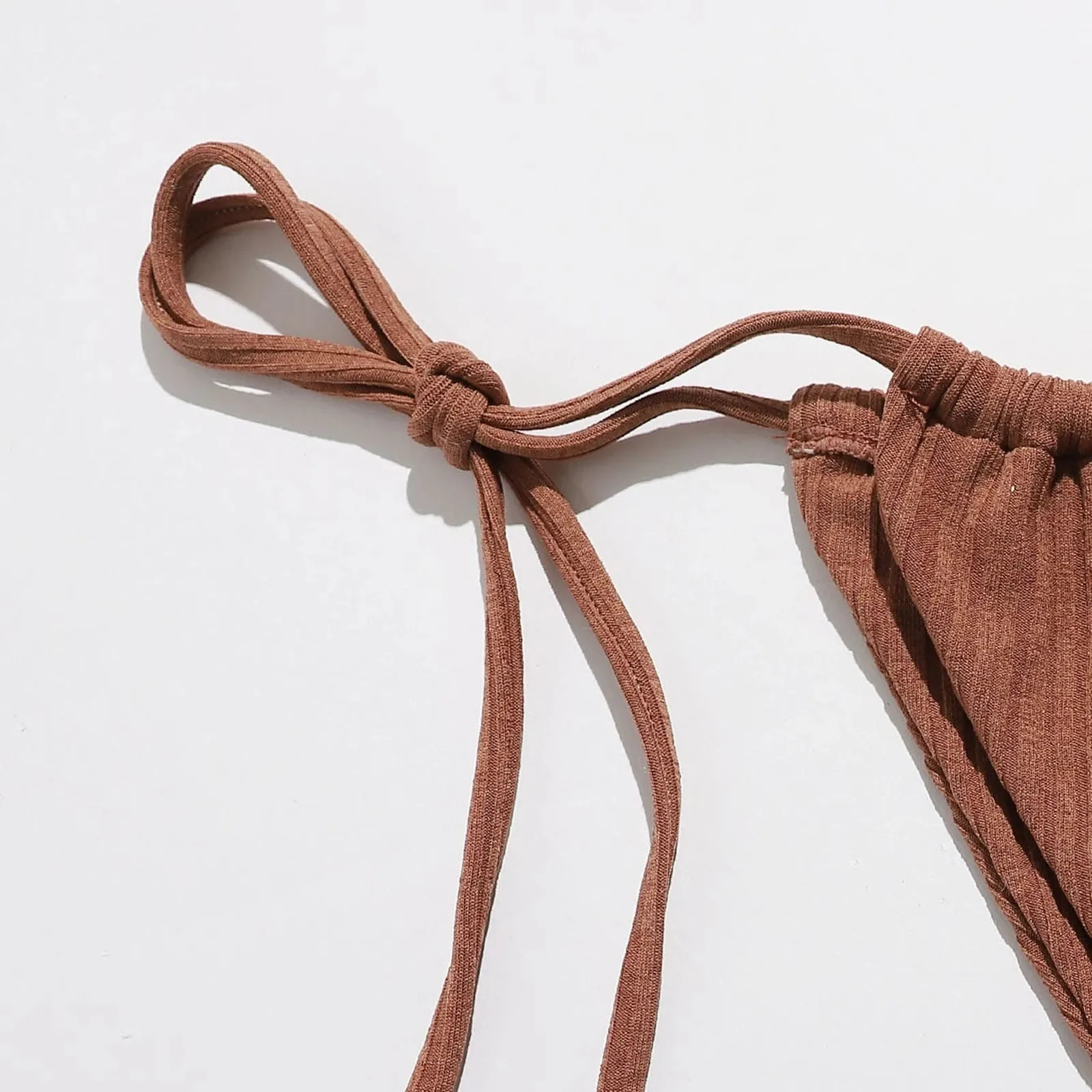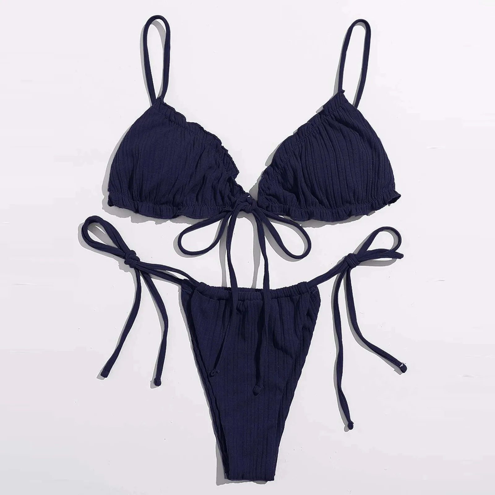Однотонное бикини, бразильский купальник, Женский комплект бикини, ...