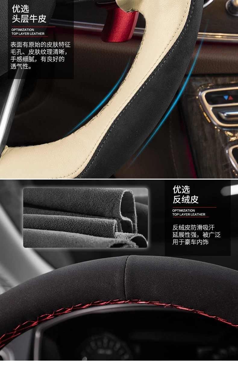 Прошитая вручную кожаная замшевая Автомобильная Оплетка на руль для...