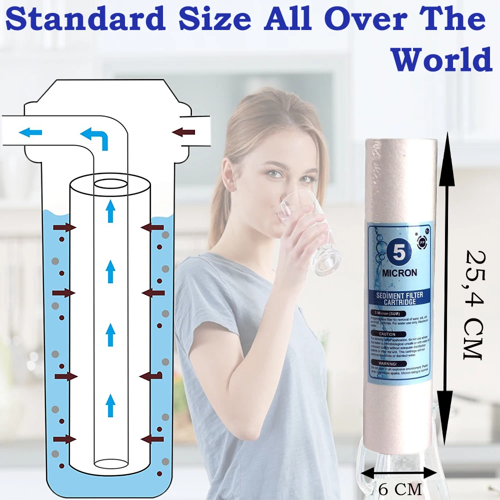 Фильтрующий элемент для осадочной воды, 25 шт., 5 микрон, картридж для очистки, обратный осмос, 10 дюймов, фильтрующий элемент из ПП хлопка, ультрафильтрация