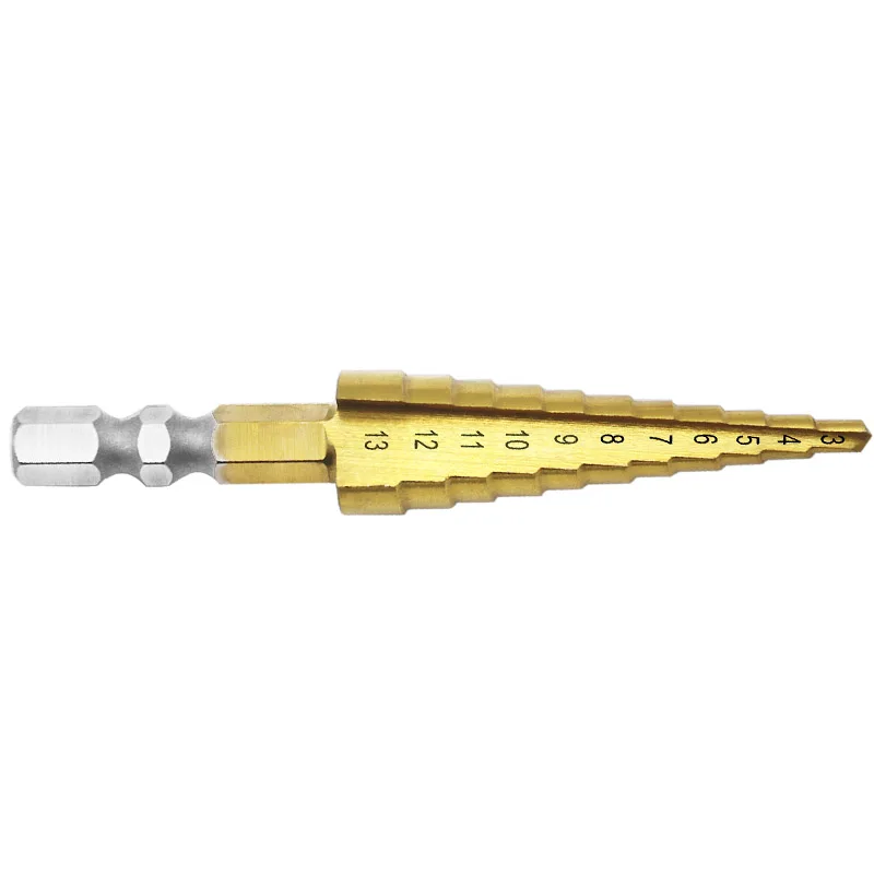 Быстрорежущая сталь 1 шт., сверло 3-13 мм с шестигранным титановым конусом 4241 для сверления металлических листов, дерева, электроинструментов