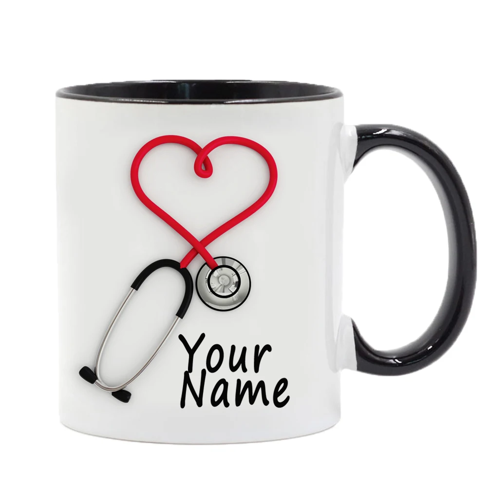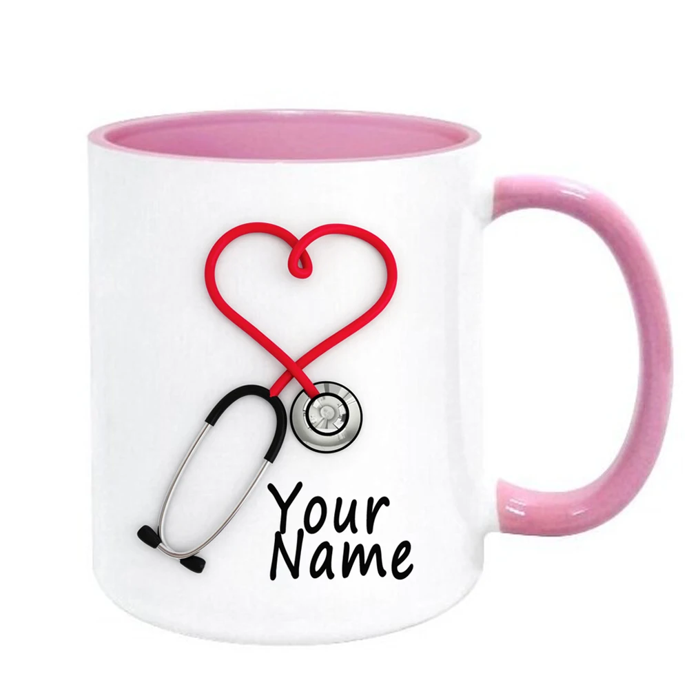 Персонализированные имени стетоскоп медсестры и доктора Подарочная кружка для кофе 11 унций розовые керамические забавные и уникальные подарочные кружки для друзей