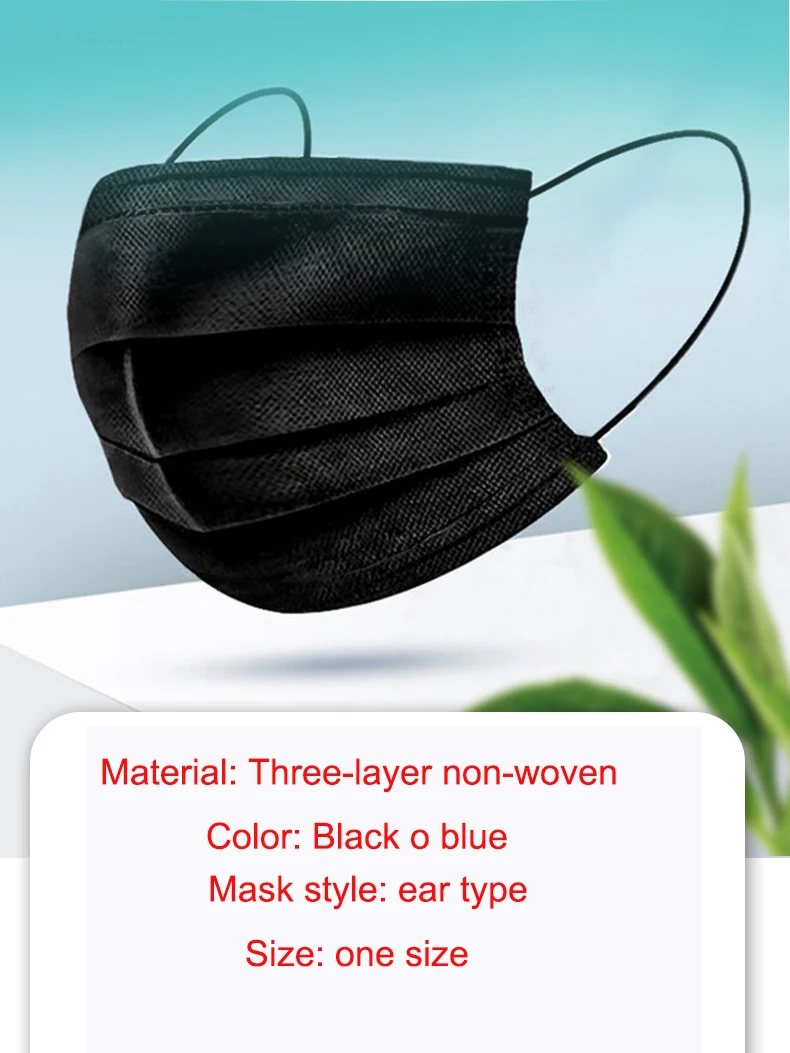 Черная/синяя/Розовая одноразовая маска для лица промышленная 3-слойная Ушная петля для взрослых Регулируемая черная маска для рта